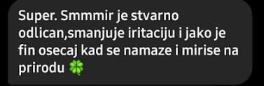 Za razliku od većine komercijalnih preparata koji sadrže veštačke sastojke koji mogu dodatno da iritiraju već osetljivu kožu, SMMMIR melem je sačinjen isključivo od prirodnih sastojaka koji umiruju i leče.